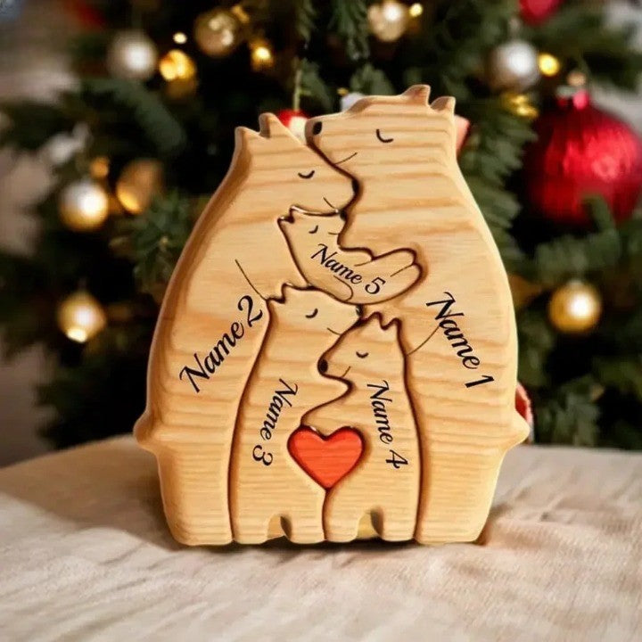 Each puzzle piece of the Engraved Bear Family Heirloom Puzzle is carefully crafted to represent a family member. Measuring the size of your palm, this artistic wooden bear sculpture perfectly fits your living space, serving both as a heartfelt tribute and an exquisite piece of home decor. Embrace the unity and love of family with every glance.